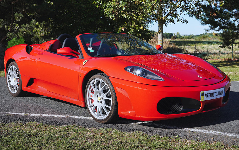 La Ferrari F430, équipée d’un V8 développant 490ch, permet aux enfants de découvrir cheveux au vent un véhicule mythique de la marque italienne.